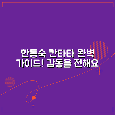 이번 가이드에서는 한동숙 칸타타의 공연 사례를 통해 감동을 전하는 방법을 살펴보겠습니다. 각 단계별로 실행 가능한 팁을 제공하니, 쉽게 따라해 보세요.